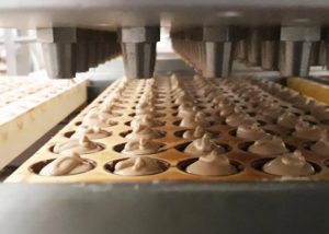 Macchine e impianti per la produzione di cioccolato, tavolette, praline, creme, barrette, prodotti da ricorrenza quali uova di Pasqua e altre figure cave, macchine per il riempimento e la ricopertura.